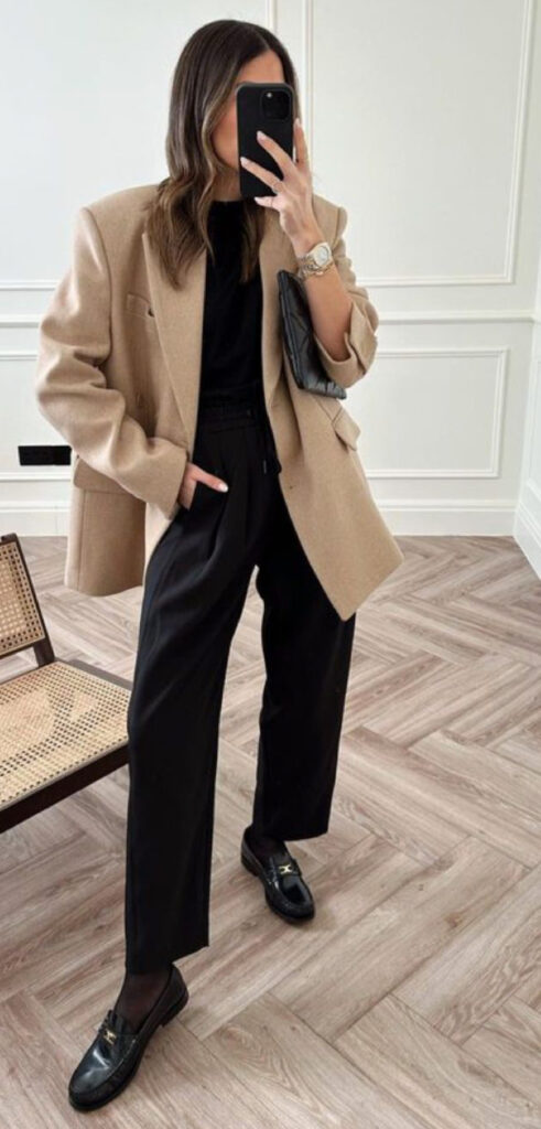 La elección de un buen calzado es fundamental para elevar cualquier outfit. Debe equilibrar comodidad y elegancia. Los mocasines o loafers clásicos son sofisticados y cómodos, mientras que los botines de tacón bajo aportan versatilidad y estilizan más la figura. En oficinas con dress code más relajado, las deportivas se han convertido en un básico imprescindible, combinando confort y estilo.