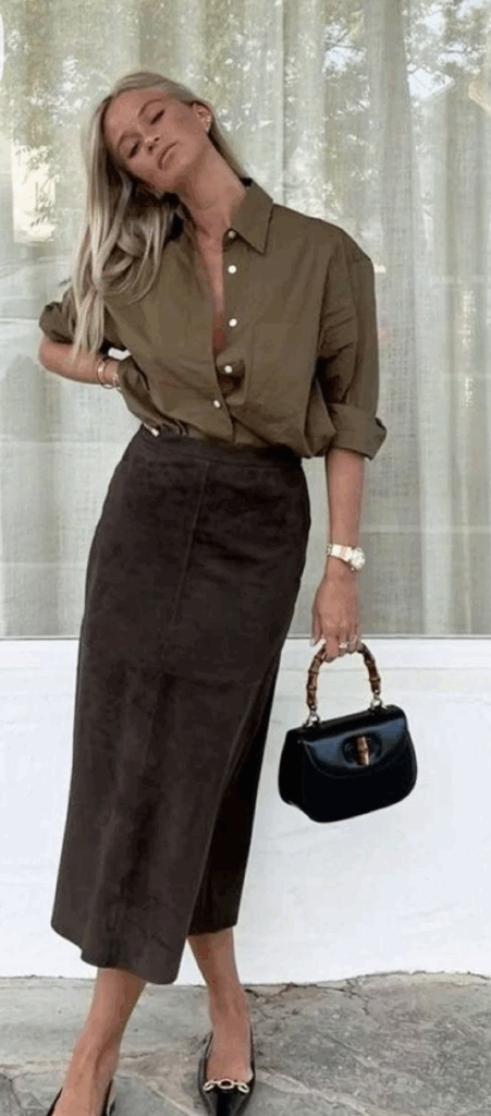 Los vestidos midi y las faldas lápiz son esenciales para cualquier armario de oficina. Los vestidos tipo wrap o envolventes son favorecedores para todas las figuras. Sin duda, crear un outfir con este tipo de prensa es la mejor elección para brillar en cualquier ocasión. Las faldas midi o lápiz combinadas con blusas básicas o camisas clásicas logran un equilibrio perfecto entre elegancia y comodidad.
